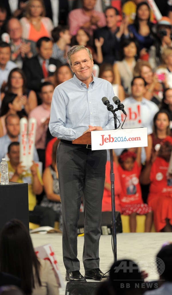 【6月16日 AFP】米共和党のジェブ・ブッシュ(Jeb Bush)元フロリダ州知事(62)は15日、次期大統領選挙への出馬を表明した。ブッシュ氏の政治的な血筋について懐疑的な有権者らの票も取り込んでいくことを目指し、同氏は、バラク・オバマ(Barack Obama)大統領の在任期間8年の後は、「米国はもっと良くなってしかるべき」だと訴えた。