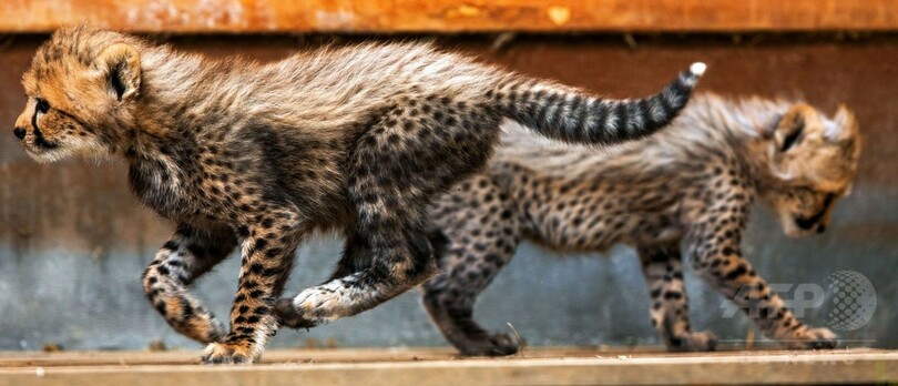 【6月16日 AFP】ドイツ北東部ロストック(Rostock)の動物園で15日、チーターの赤ちゃんが「屋外デビュー」した。赤ちゃんチーターたちは外の世界に興味津々の様子で、母チーターが見守る中、元気に遊びまわっていた。(c)AFP