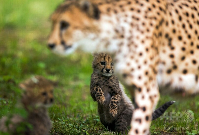 【6月16日 AFP】ドイツ北東部ロストック(Rostock)の動物園で15日、チーターの赤ちゃんが「屋外デビュー」した。赤ちゃんチーターたちは外の世界に興味津々の様子で、母チーターが見守る中、元気に遊びまわっていた。(c)AFP
