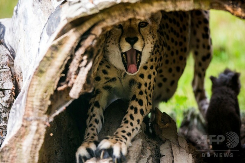 【6月16日 AFP】ドイツ北東部ロストック(Rostock)の動物園で15日、チーターの赤ちゃんが「屋外デビュー」した。赤ちゃんチーターたちは外の世界に興味津々の様子で、母チーターが見守る中、元気に遊びまわっていた。(c)AFP