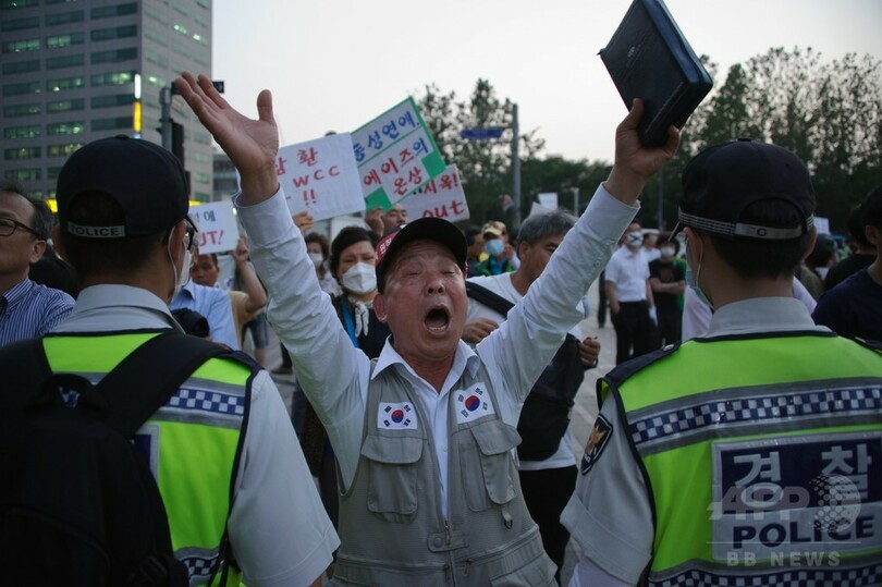 韓国では、性的アイデンティティーの問題に関していまだ非常に保守的で、同性愛は「外国のもの」だとみなす風潮が強く、性的少数者の多くがそれを気づかれないように暮らしている。同性愛者の権利を擁護する活動家らは、近年一定の進歩がみられると述べているが、警察によるパレードの禁止は、15年前にこのフェスティバルが始まって以来、初めてのことだという。パレードは近年、参加者が増えていると同時に、批判も集まるようになっている。(c)AFP