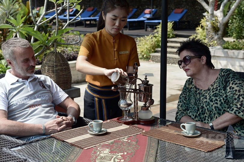 そうしたゾウがいるタイの北端チエンセーン(Chiang Saen)のアナンタラ(Anantara)ホテルでは、上品な19世紀のフランス製コーヒーマシンを使って、ゲストの目の前でゾウのコーヒーがいれられる。