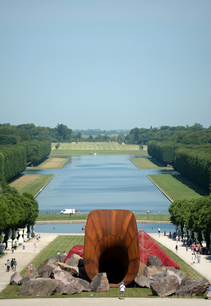 インド出身の現代彫刻家アニッシュ・カプーア(Anish Kapoor)氏が「汚い隅(Dirty Corner)」という題をつけたこの作品は、高さ10メートル、長さ60メートルある彫刻で、年間500万人が訪れるベルサイユ宮殿の前庭に設置され、じょうご型の開口部が宮殿側を向いている。