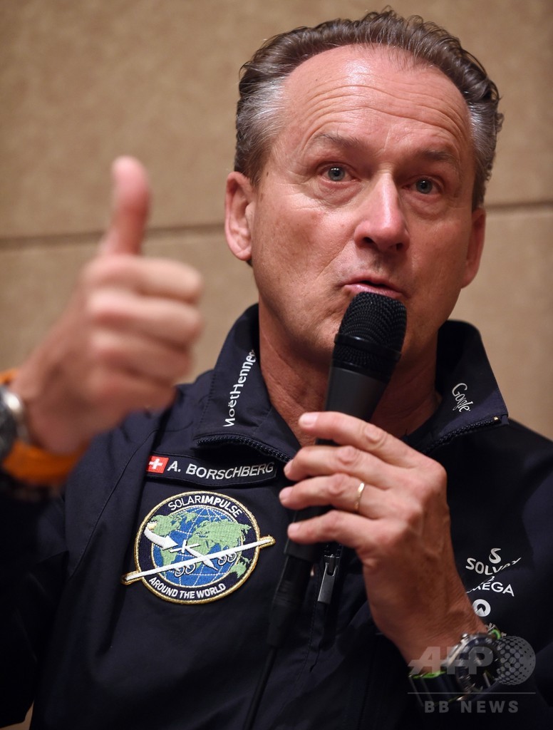 【6月18日 AFP】太陽エネルギーのみでの世界一周飛行に挑戦中、悪天候のため名古屋に緊急着陸した次世代ソーラー飛行機「ソーラー・インパルス2(Solar Impulse 2、Si2)」の操縦士、アンドレ・ボルシュベルク(Andre Borschberg)氏は18日、都内で記者会見し、天候条件の改善を待ってあと2か月ほど待機する準備はできているものの、今年の世界一周は断念せざるをえないかもしれないと語った。