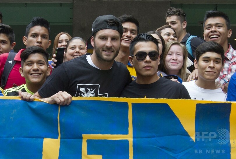 【6月19日 AFP】フランス・リーグ1のオリンピック・マルセイユ(Olympique de Marseille)を退団し、メキシコ1部リーグのUANLティグレス(UANL Tigres)移籍が確実とされているフランス代表ストライカーのアンドレ・ピエール・ジニャック(Andre-Pierre Gignac)が18日、メキシコのモンテレイ(Monterrey)に到着し、ファンから歓迎を受けた。