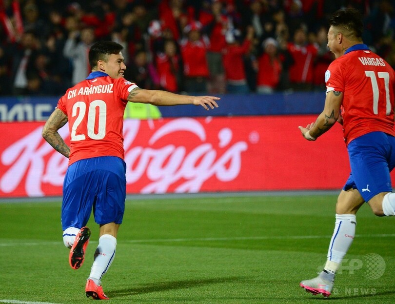 前半3分、ビダルが先発メンバーに名を連ねたチリはインテル(Inter Milan)に所属するメデルのロングボールをエドゥアルド・バルガス(Eduardo Vargas)が落とすと、走り込んだアランギスが低いシュートを決めて早々にリードを奪った。