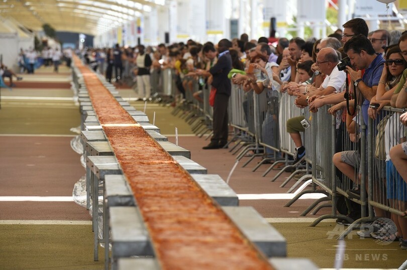 【6月21日 AFP】イタリア・ミラノ(Milan)で開催されているミラノ国際博覧会(Expo Milan 2015)で20日、長さ1595.45メートルのピザが作られ、世界最長のピザとしてギネス世界記録(Guinness World Records)に認定された。