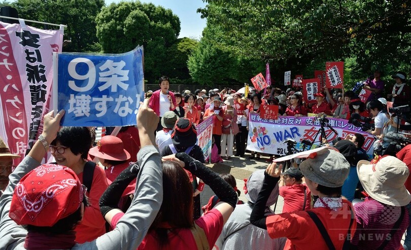 【6月21日 AFP】都内の国会周辺で20日、安倍晋三(Shinzo Abe)首相が成立を目指している安全保障関連法案に抗議するデモが行われた。女性を中心とした何千人もの参加者らは赤い服を着て人間の鎖を作り、国会議事堂を取り囲んだ。(c)AFP