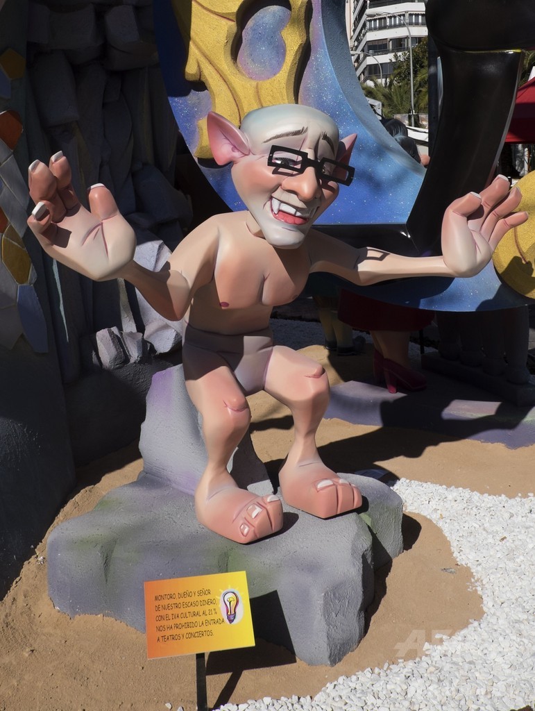 勢いよく燃える風刺像、スペイン・アリカンテで火祭り