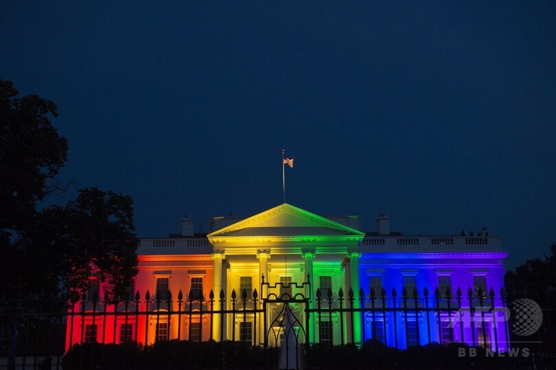 ホワイトハウスが虹色に、米最高裁の同性婚合法判決で
