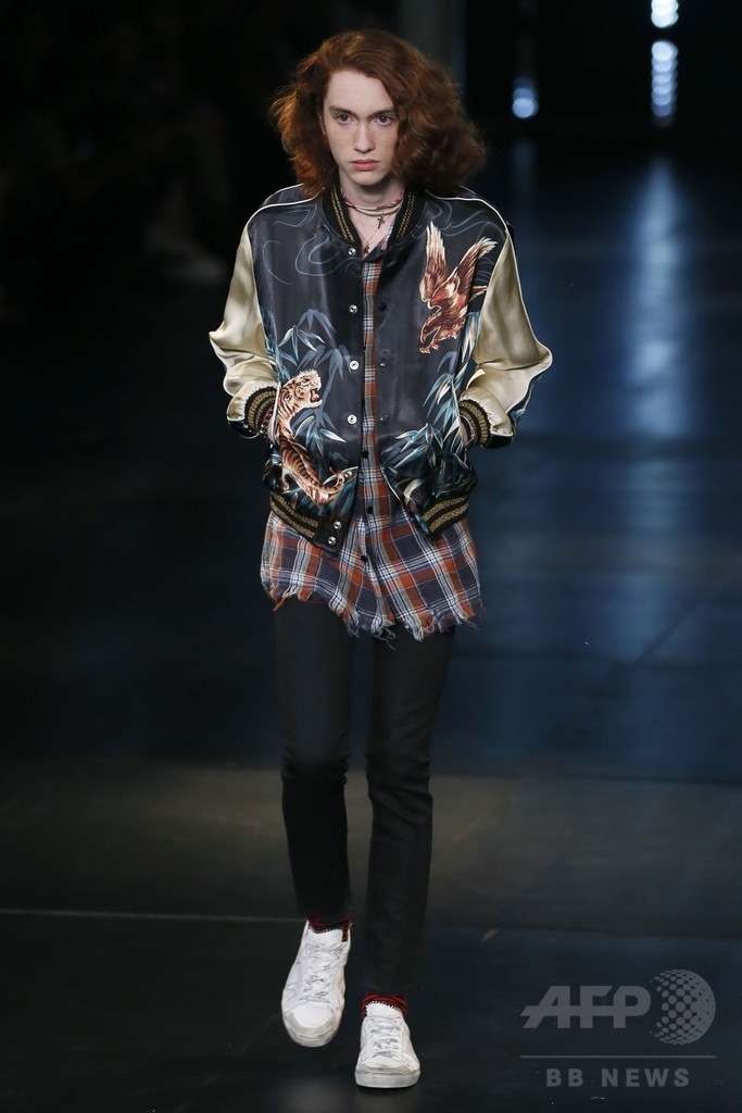 28日には、エディ・スリマン(Hedi Slimane)が手がける「サンローラン(Saint Laurent)」が新作を発表した。(c)AFP