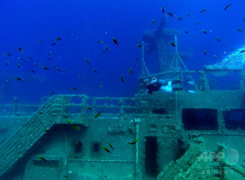 【6月29日 AFP】地中海の島国キプロスのラルナカ(Larnaca)沖で28日、海に沈んでいるスウェーデンのフェリー「ゼノビア号(MS Zenobia)」を目当てに潜る沈船ダイビング・イベント「マス・ダイブ(Mass Dive)」が開催され、120人を超えるダイバーが参加した。(c)AFP