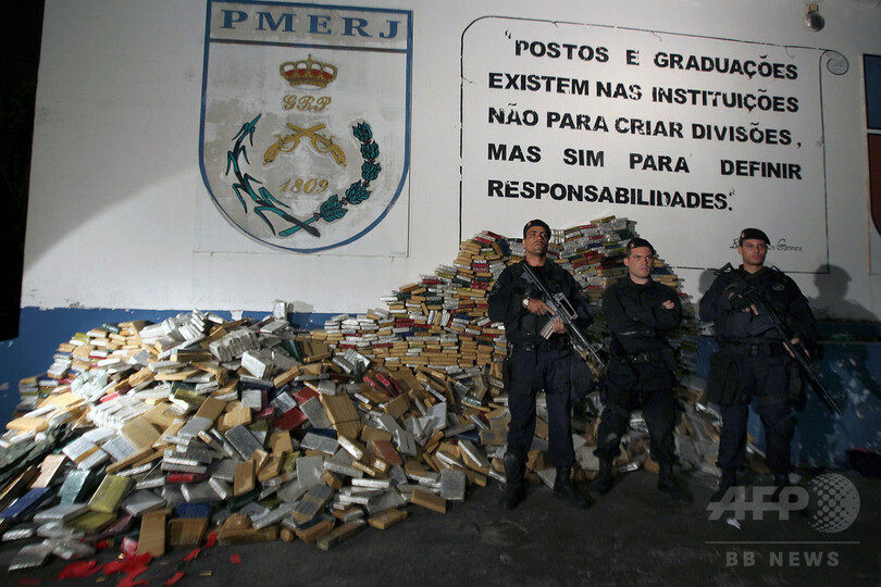 【6月30日 AFP】ブラジル・リオデジャネイロ(Rio de Janeiro)付近で先週末、麻薬密輸業者のトラックと護送車が山道から落ち、積んでいたマリファナ1.3トンが散乱する事件があった。