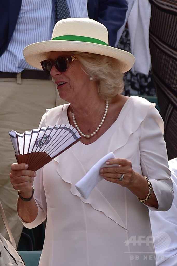 【7月3日 AFP】英ロンドン(London)で開催中のテニス、ウィンブルドン選手権(The Championships Wimbledon 2015)では、ストロベリー・アンド・クリームに舌鼓を打つ人や、ピムス(Pimm's)や公式タオルにお金をつぎ込む人もいるが、カミラ英皇太子夫人(Camilla, Duchess of Cornwall)はアンディ・マレー(Andy Murray、英国)のリストバンドを手に家路に就いた。