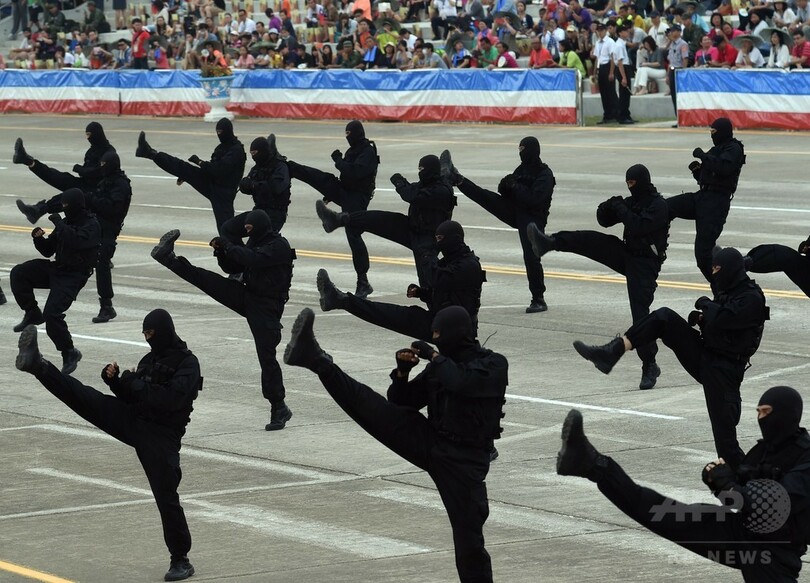 【7月4日 AFP】台湾の新竹(Hsinchu)県で4日、抗日戦争勝利70年を記念する式典が行われ、台湾軍の特殊部隊などが戦闘技術などのデモンストレーションや軍事パレードを行った。