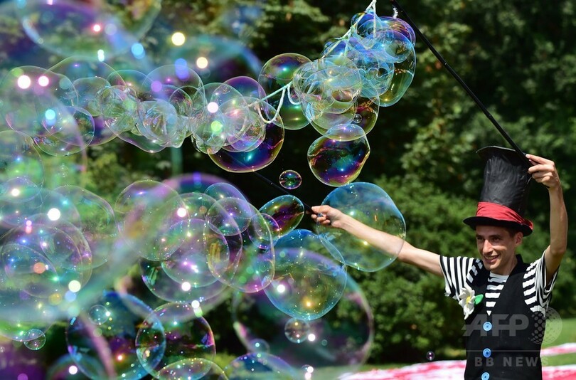 暑さも飛んでいけ!? シャボン玉飛ばす大道芸人たち 伊ミラノ