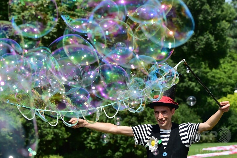 暑さも飛んでいけ!? シャボン玉飛ばす大道芸人たち 伊ミラノ