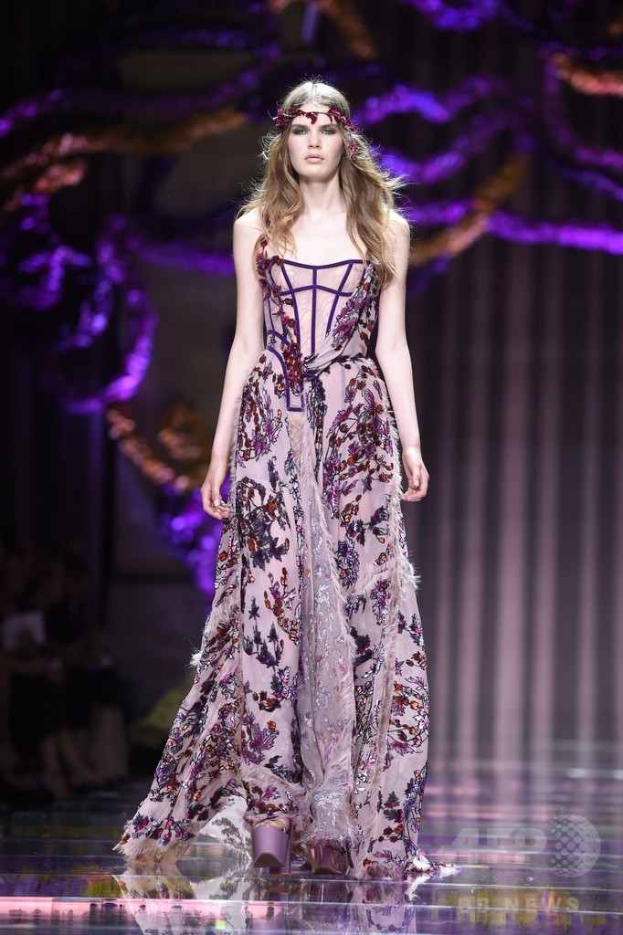 5日には、ドナテッラ・ヴェルサーチ(Donatella Versace)が手がける「アトリエ ヴェルサーチ(Atelier Versace)が新作を発表した。(c)AFP