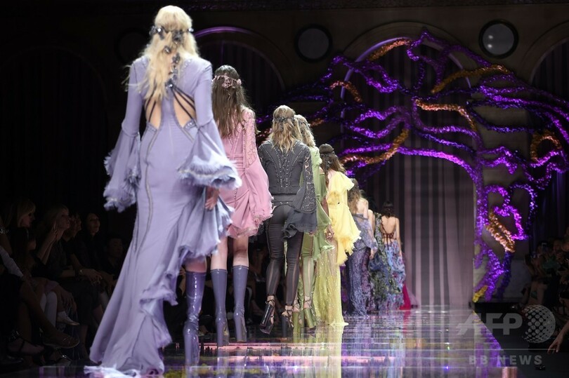 5日には、ドナテッラ・ヴェルサーチ(Donatella Versace)が手がける「アトリエ ヴェルサーチ(Atelier Versace)が新作を発表した。(c)AFP