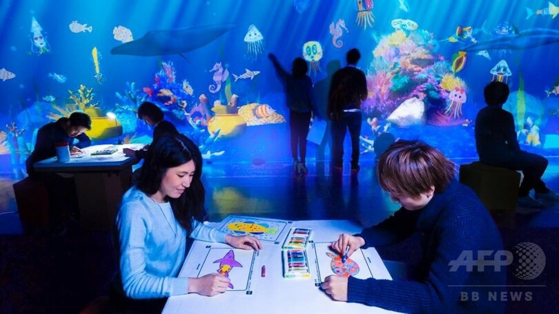 また、「紙」に自由に描いた魚が目の前の巨大な水族館で泳ぎだす『お絵かき水族館』や、サイネージの前に立ち、手をかざしてスタートボタンに触れると、自動的に撮影が始まり、様々な加工を施された画像が、Facebookページにアップロードされる「teamLabCamera(チームラボカメラ)」が体験できる。