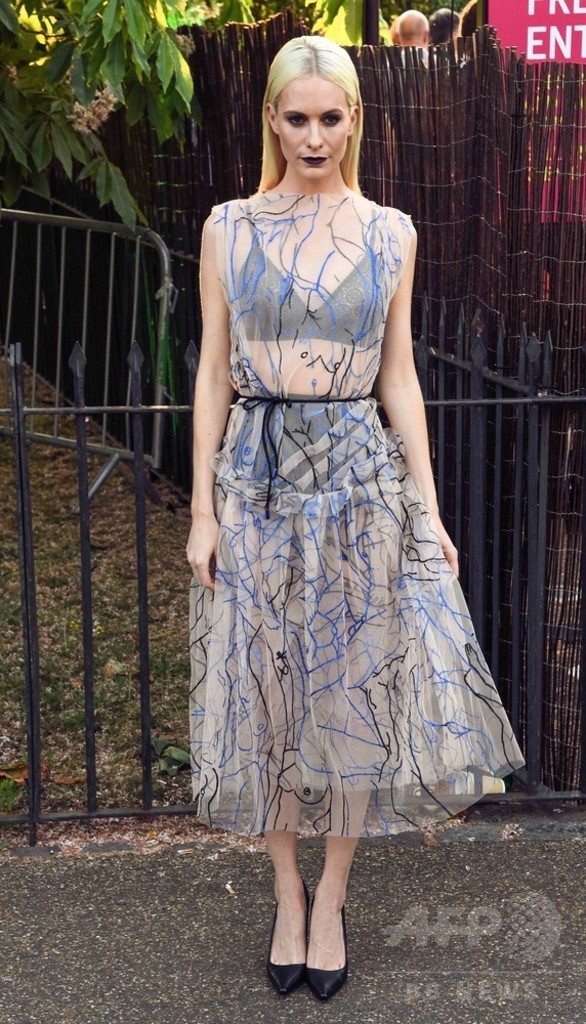 モデルのポピー・デルヴィーニュ(Poppy Delevingne)は、「クリストファーケイン(Christopher Kane)」2015/16年秋冬コレクションのシアードレスを着用した。(c)MODE PRESS