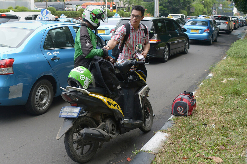 ニュース ライフ 渋滞もスイスイ、ジャカルタで人気のバイクタクシー呼び出しアプリ 2015年7月7日 15:45 発信地:ジャカルタ/インドネシア [ アジア・オセアニア インドネシア ] このニュースをシェア ‹ › ❮ 4/8 ❯ インドネシアのジャカルタで、新興企業Go-Jekのバイクタクシー運転手に運賃を支払う乗客(右、2015年6月11日撮影)。(c)AFP/ADEK BERRY 画像作成中 ! 【7月7日 AFP】インドネシアのジャカルタ(Jakarta)では、新興企業 Go-Jekが提供するバイクタクシー呼び出しアプリが人気だ。このアプリを利用すれば、市内を数千台が走っている同社のバイクタクシーを呼び出し、同市の悪名高い交通渋滞から逃れることができる。同社のバイクタクシーは緑のジャケットとヘルメットに身を包んだ運転手が特徴的だ。(c)AFP ライフ 一覧へ> メディア・報道関係・法人の方向け 写真・動画 購入のお問合せ>