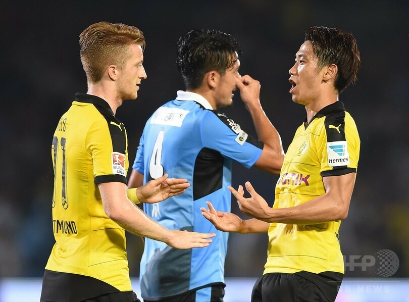 【7月8日 AFP】来日中のドイツ・ブンデスリーガ1部のボルシア・ドルトムント(Borussia Dortmund)は7日、Jリーグ1部(J1)の川崎フロンターレ(Kawasaki Frontale)と親善試合を行い、香川真司(Shinji Kagawa)が得点を記録するなど6-0で大勝した。