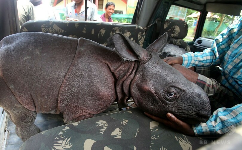 生後3日の赤ちゃんインドサイ、印国立公園で見つかる