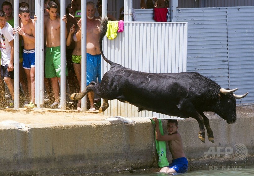 ニュース ライフ 牛の突撃かわしてドボン!スペイン伝統の「海の牛追い祭り」 2015年7月8日 10:27 発信地:デニア/スペイン [ ヨーロッパ スペイン ] このニュースをシェア ‹ › ❮ 7/10 ❯ スペイン・デニアで開かれた「海の牛追い祭り」で、牛が海に飛び込むのを見守る参加者(2015年7月7日撮影)。(c)AFP/JOSE JORDAN 画像作成中 ! 【7月8日 AFP】スペインの港町デニア(Denia)で7日、伝統的な「海の牛追い祭り」が開かれ、参加者と牛が次々に海に飛び込んだ。(c)AFP ライフ 一覧へ> メディア・報道関係・法人の方向け 写真・動画 購入のお問合せ>