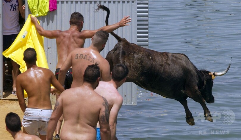 ニュース ライフ 牛の突撃かわしてドボン!スペイン伝統の「海の牛追い祭り」 2015年7月8日 10:27 発信地:デニア/スペイン [ ヨーロッパ スペイン ] このニュースをシェア ‹ › ❮ 8/10 ❯ スペイン・デニアで開かれた「海の牛追い祭り」で、牛が海に飛び込むのを見守る参加者(2015年7月7日撮影)。(c)AFP/JOSE JORDAN 画像作成中 ! 【7月8日 AFP】スペインの港町デニア(Denia)で7日、伝統的な「海の牛追い祭り」が開かれ、参加者と牛が次々に海に飛び込んだ。(c)AFP ライフ 一覧へ> メディア・報道関係・法人の方向け 写真・動画 購入のお問合せ>