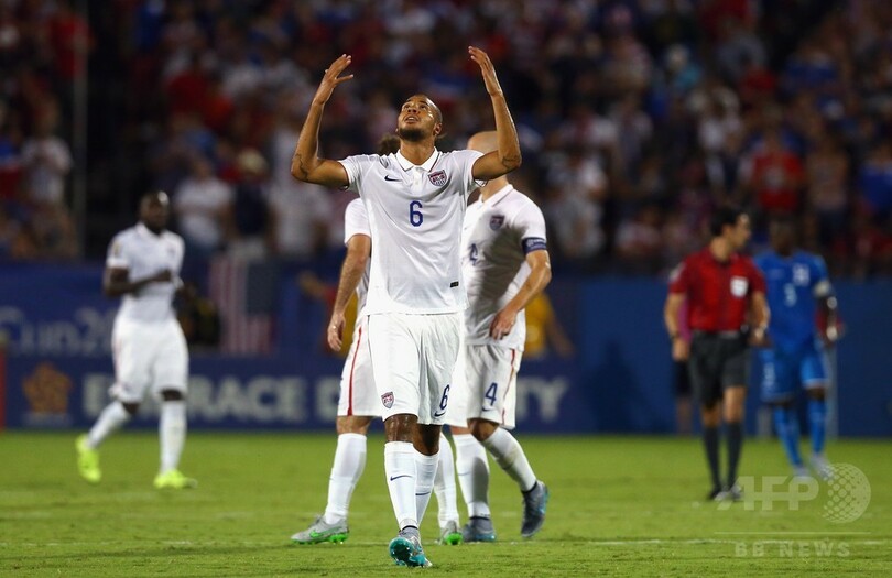 同日に行われたもう1試合で、ハイチとパナマが1-1で引き分けており、勝ち点3を獲得した米国はグループAの首位に立った。(c)AFP