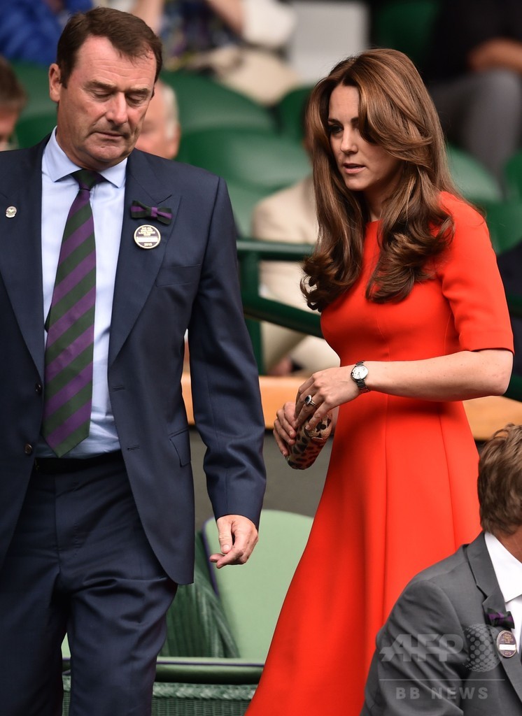 英王子夫妻がウィンブルドン観戦、キャサリン妃は真っ赤なワンピース
