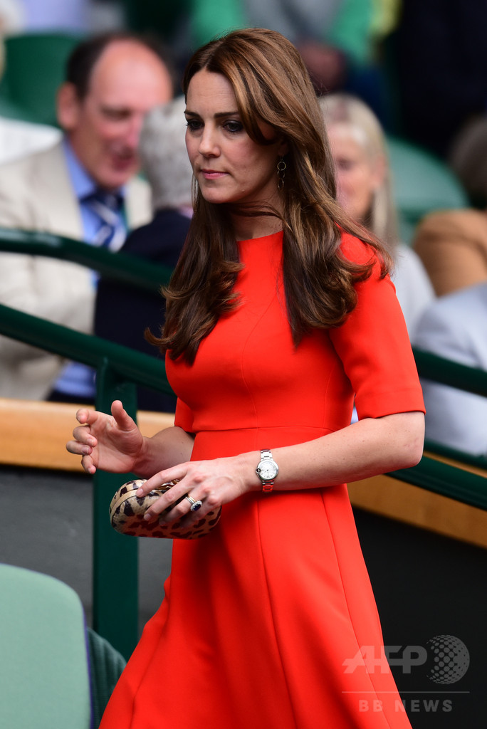 また8日は、ウィリアム王子(Prince William)ととともに英ロンドン(London)で開催中のテニス、ウィンブルドン選手権(The Championships Wimbledon 2015)男子シングルスの準々決勝を観戦。この日は「エル ケー ベネット(L.K. Bennett)」の鮮やかな赤いドレスで会場に姿を見せた。(c)MODE PRESS