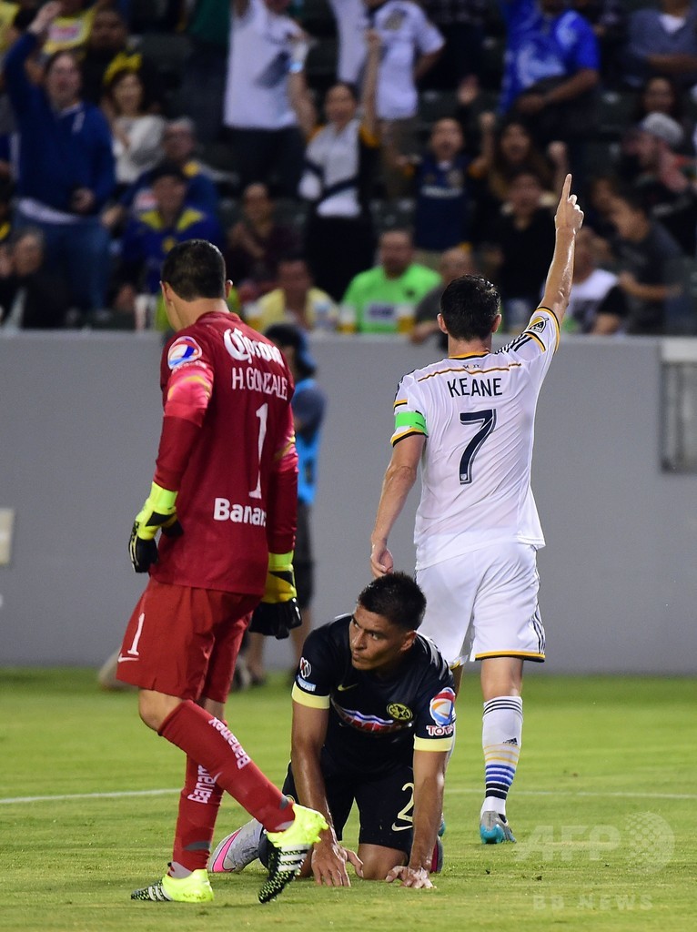 前半7分にクラブ・アメリカのカルロス・キンテロ(Carlos Quintero)に先制を許したものの、ギャラクシーはハーフタイム直前にジュニーニョ(Vitor Gomes Pereira Junior 'Juninho')のロングパスを受けたロビー・キーン(Robbie Keane)がファーストタッチでGKの逆を突き、同点ゴールを決めると、後半35分には途中出場のアラン・ゴードン(Alan Gordon)が逆転ゴールを決めた。(c)AFP