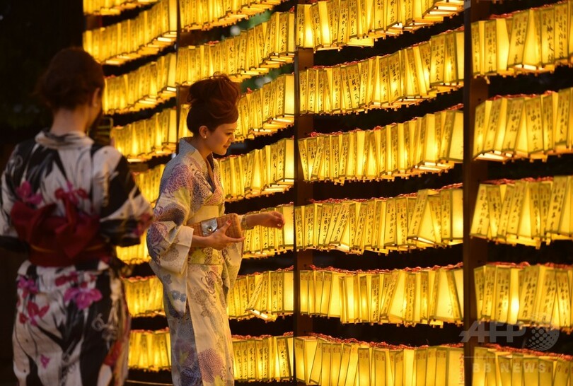 【7月14日 AFP】東京都内の靖国神社(Yasukuni Shrine)で13~16日、戦没者を慰霊する「みたままつり」が開催されている。境内には約3万個の提灯(ちょうちん)が掲げられ、大勢の参拝客でにぎわっている。(c)AFP