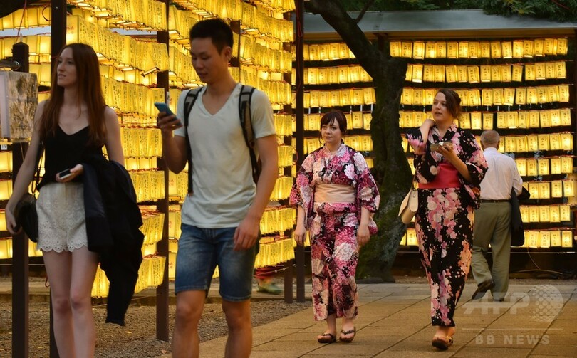 【7月14日 AFP】東京都内の靖国神社(Yasukuni Shrine)で13~16日、戦没者を慰霊する「みたままつり」が開催されている。境内には約3万個の提灯(ちょうちん)が掲げられ、大勢の参拝客でにぎわっている。(c)AFP