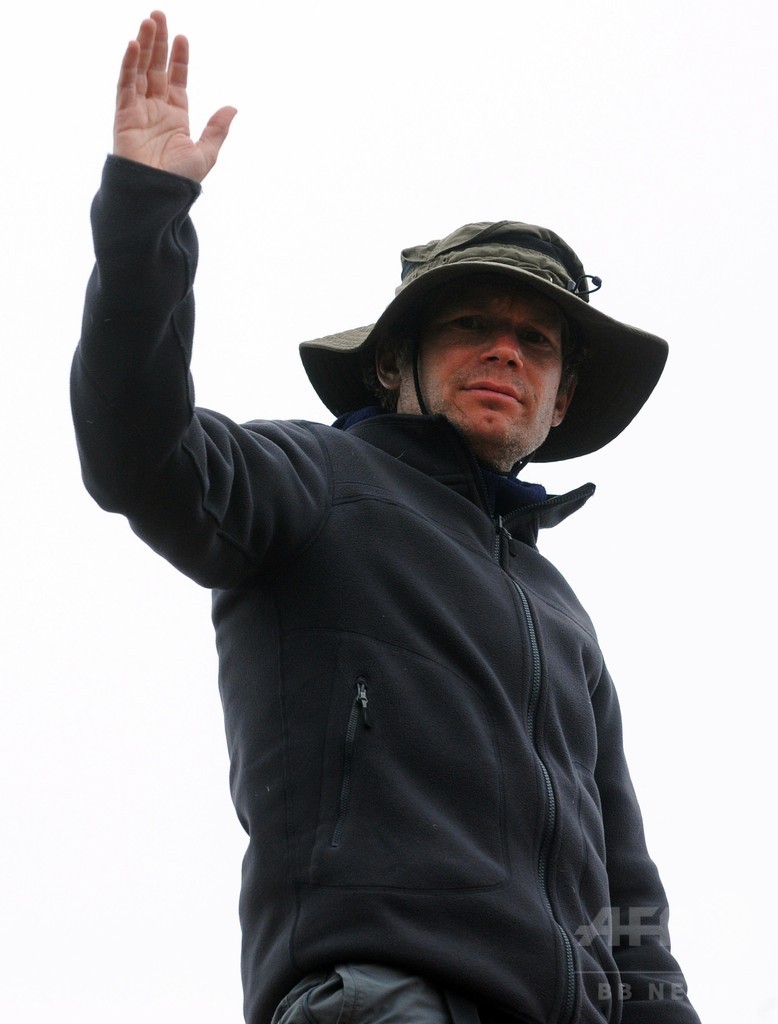 【7月16日 AFP】フランス西部エスキビアン(Esquibien)の海岸沿いに設置された柱の最頂部に立つ仏美術作家のアブラアム・ポワンシュバル(Abraham Poincheval)さん。これは、パフォーマンス作品「La Vigie(監視所)」の一環として行われたもので、1週間にわたり滞在する予定だという。(c)AFP