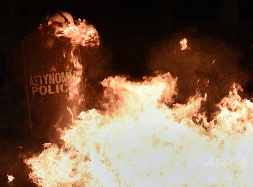 ギリシャ議会前で反緊縮デモが暴徒化、警察と衝突