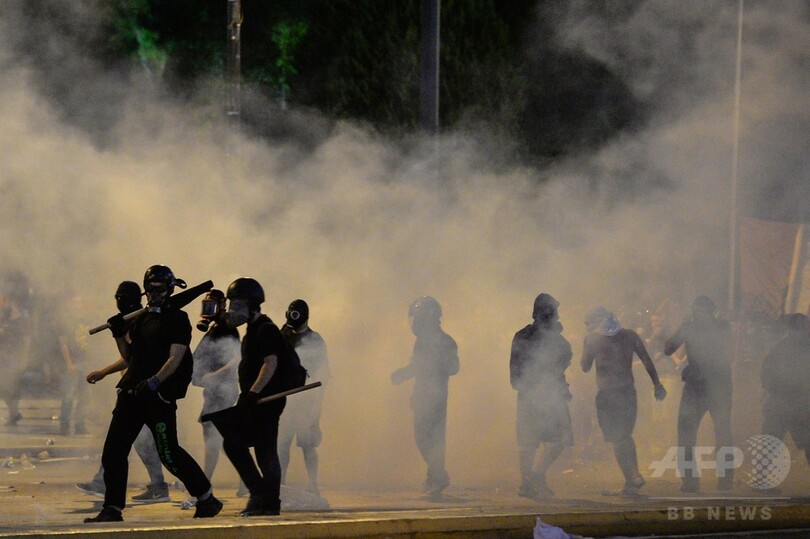 ギリシャ議会前で反緊縮デモが暴徒化、警察と衝突