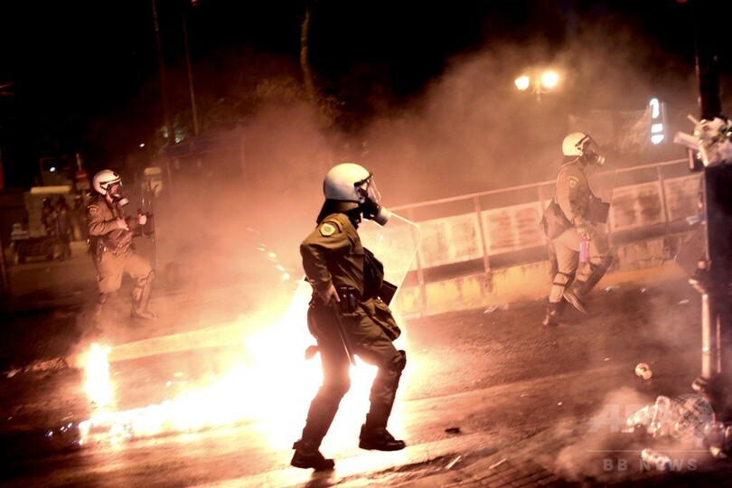 ギリシャ議会前で反緊縮デモが暴徒化、警察と衝突