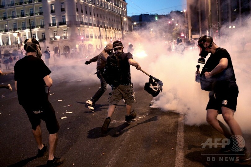 ギリシャ議会前で反緊縮デモが暴徒化、警察と衝突