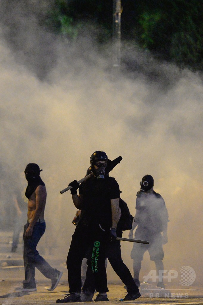 【7月16日 AFP】ギリシャの首都アテネ(Athens)中心部の議会前広場で15日、欧州など債権団から金融支援協議の条件とされた財政改革法案の採決に抗議していた緊縮反対派の抗議デモが一部で暴徒化し、警察と衝突した。