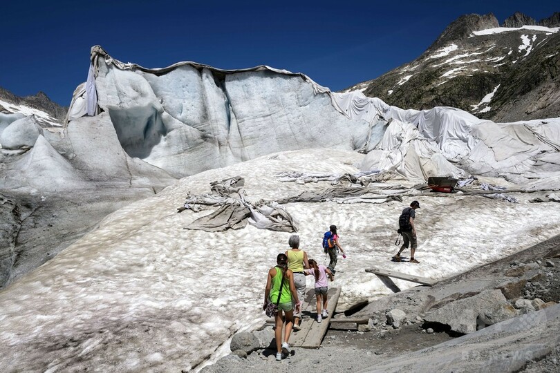 ニュース 環境・科学 断熱シートで覆われるローヌ氷河、スイス 2015年7月17日 12:52 発信地:グレッチ/スイス [ ヨーロッパ スイス ] このニュースをシェア ‹ › ❮ 3/13 ❯ スイス・グレッチ近郊で、断熱シートで覆われたローヌ氷河の横を歩き氷穴へ向かう観光客(2015年7月14日撮影)。(c)AFP/FABRICE COFFRINI 画像作成中 ! 【7月17日 AFP】スイス・グレッチ(Gletsch)近郊のローヌ氷河(Rhone Glacier)が、照りつける真夏の日差しによる溶解を食い止めるために断熱シートで覆われている。(c)AFP 環境・科学 一覧へ> メディア・報道関係・法人の方向け 写真・動画 購入のお問合せ>