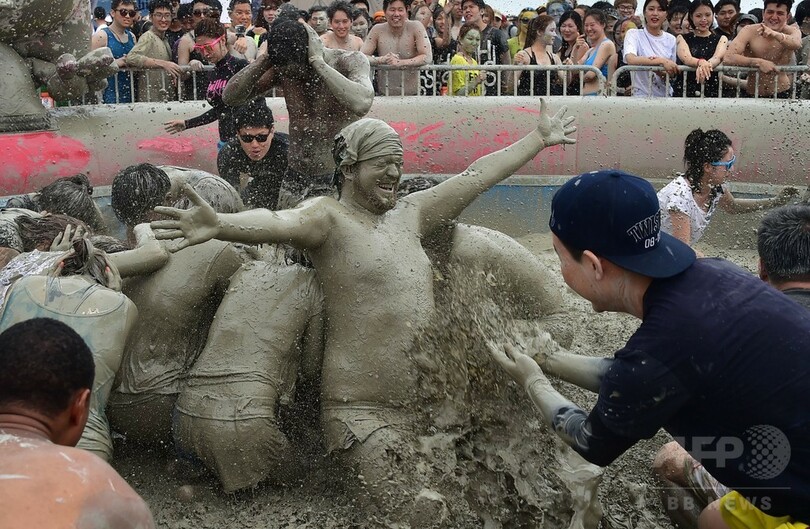 恒例の泥んこ祭り、遊びながらスキンケアも 韓国