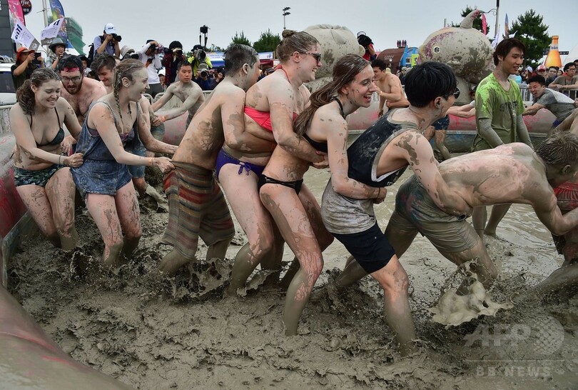 【7月20日 AFP】韓国中西部・保寧(Boryeong)の大川(Daecheon)海水浴場で、第18回「保寧マッドフェスティバル(Boryeong mud festival)」が17日から開催されている。