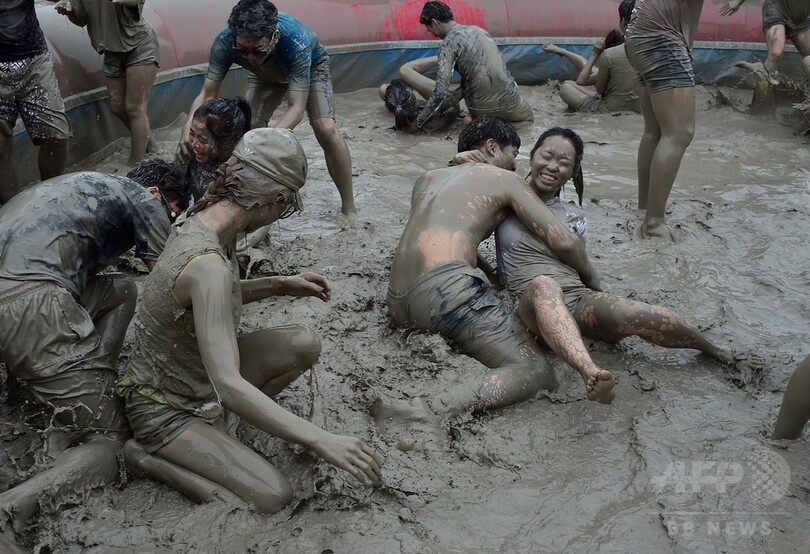 恒例の泥んこ祭り、遊びながらスキンケアも 韓国