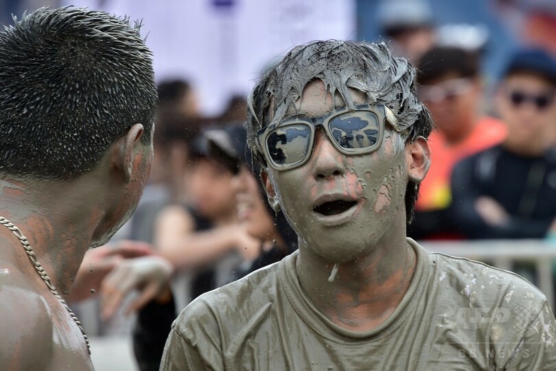 恒例の泥んこ祭り、遊びながらスキンケアも 韓国