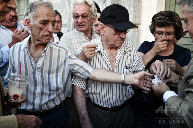 ただし、先月29日以来導入されている資本規制は継続される。これまでの現金引き出し額は、1日当たり60ユーロ(約8000円)までに制限されていたが、現在は週当たり420ユーロ(約5万6000円)の上限となっている。(c)AFP