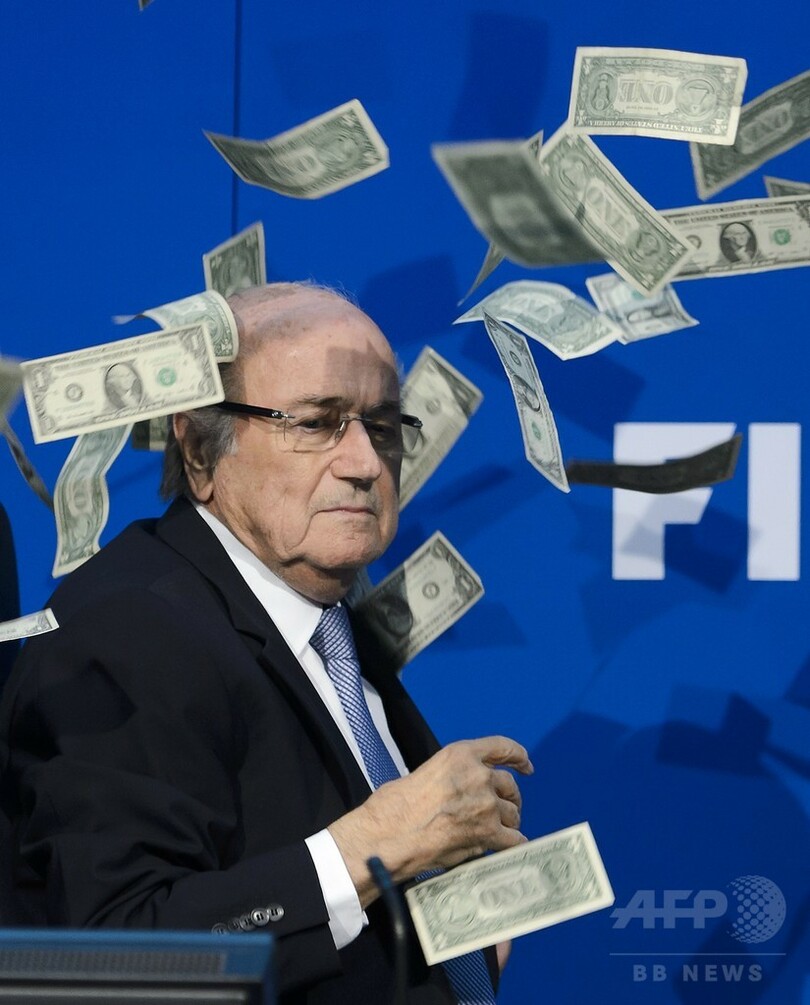 【7月21日 AFP】国際サッカー連盟(FIFA)のジョセフ・ゼップ・ブラッター(Joseph Sepp Blatter)会長は20日、記者会見の席で、英コメディアンから大量の偽札をばらまかれるハプニングに見舞われた。