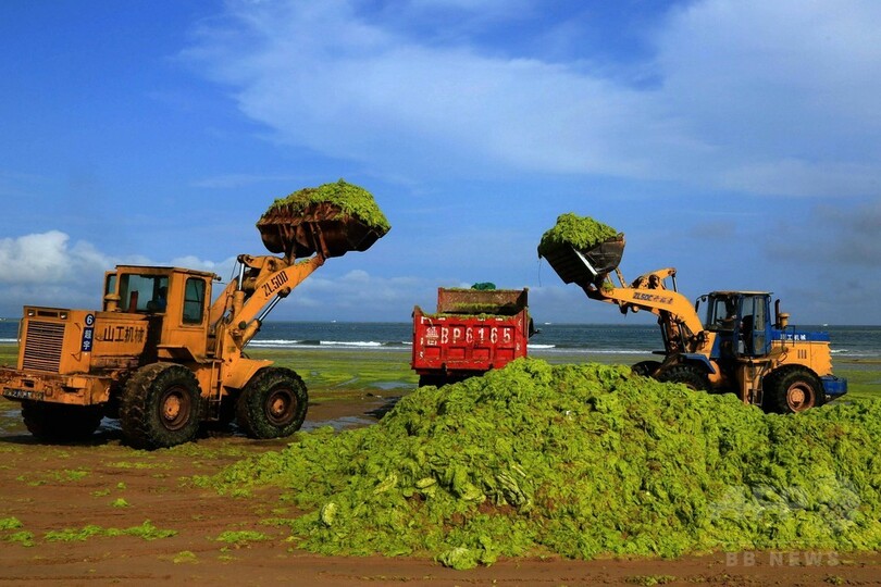 今年も藻が大量発生、中国・青島の海岸 原因は不明